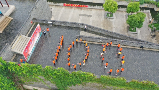 2021年6月26日上午在上海淀山湖、嘉兴南湖景区西南湖和苏州护城河三地百名皮划艇桨板爱好者在纷纷小雨中共同举行了“百人百艇庆百年”的庆祝建党百年活动。在苏州站,23条皮划艇在外城河上摆出数字“100”的造型,献礼党的百年华诞。